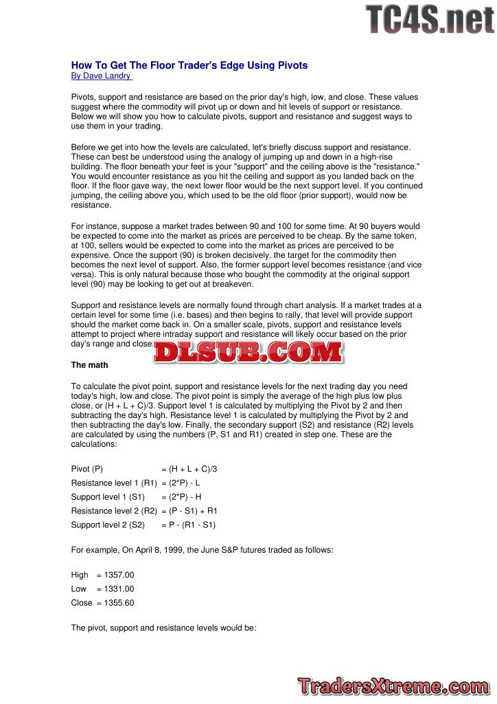 Dave Landry How To Get The Floor Traders Edge Using Pivots