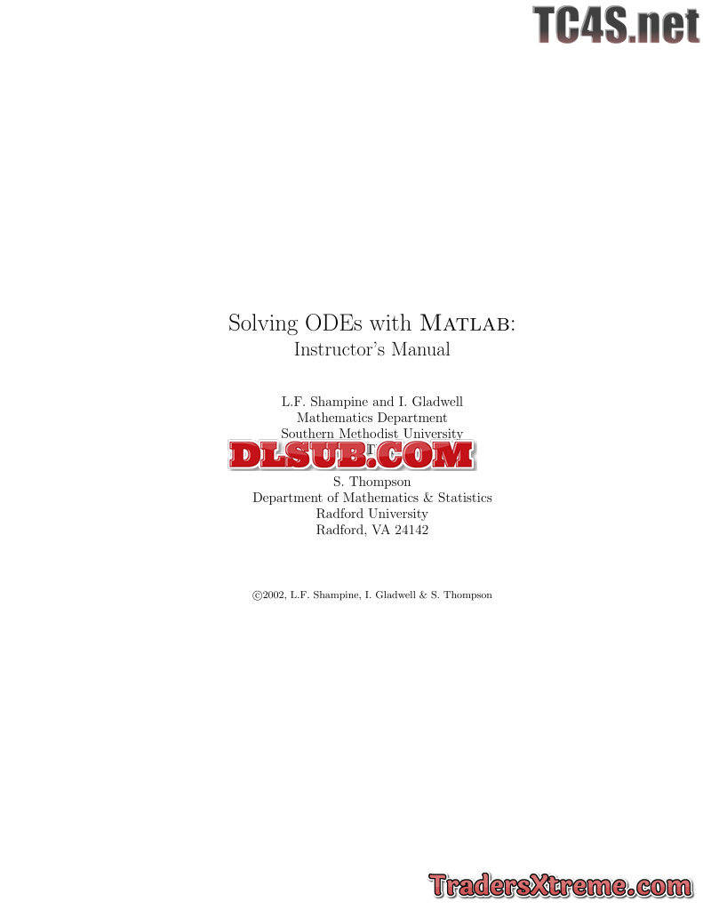 Shampine L F Gladwell I Solving Odes With Matlab Instructors Manual - JPG Image File