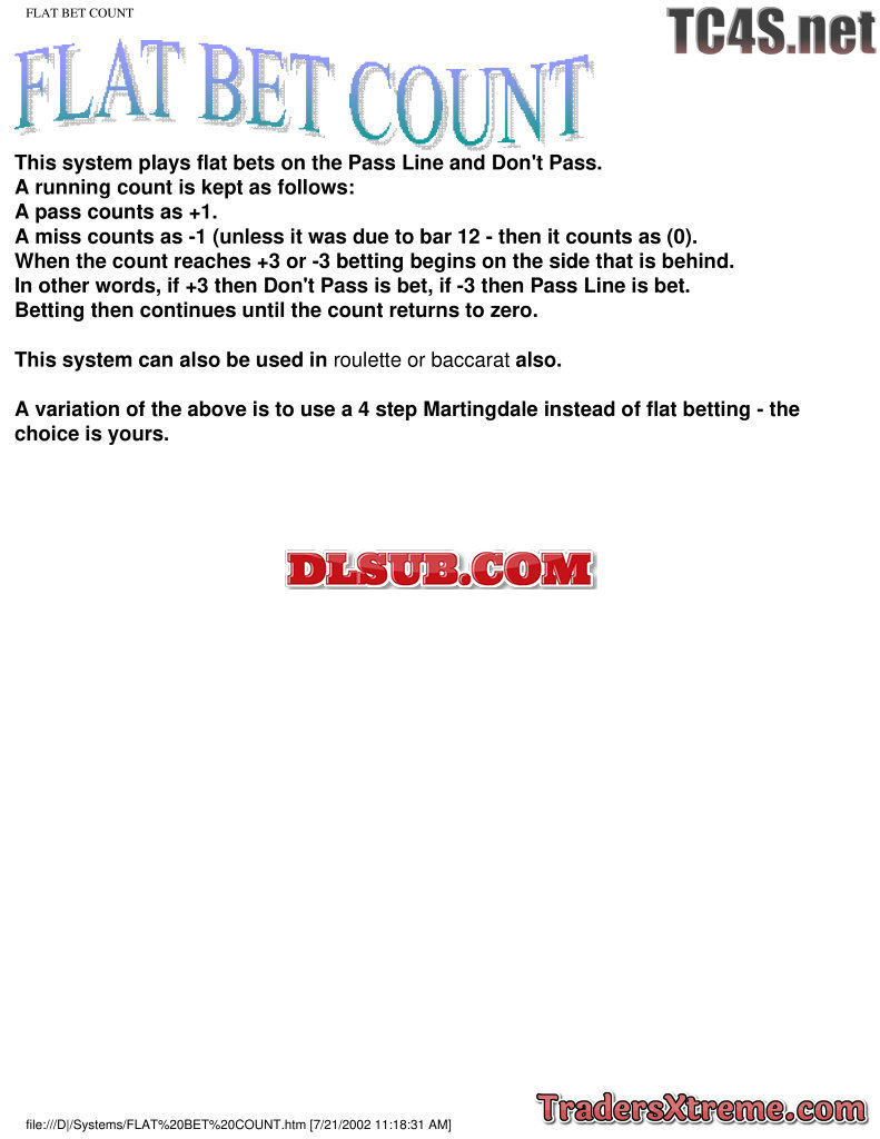 Flat Bet Count System For Roulette