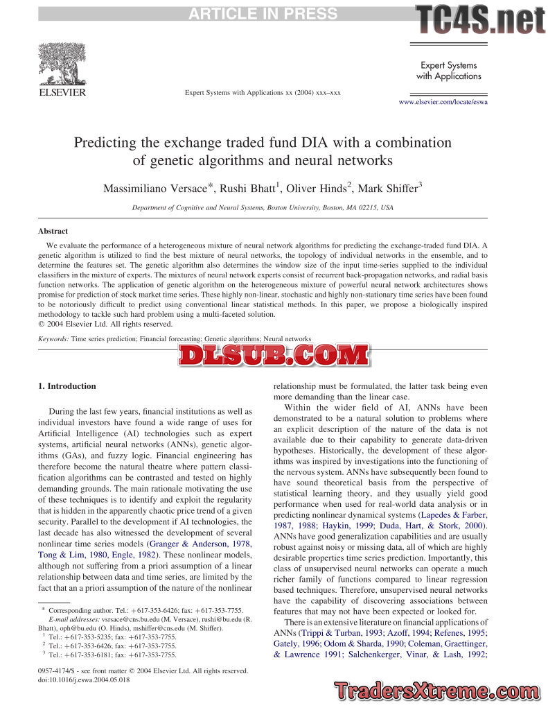 Massimiliano Versace Predicting The Etf Dia With A Combination Of Genetic Algorithms And Neural Networks