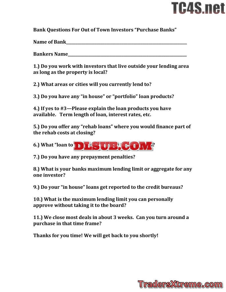 Bank Questions For Out Of Town Investors - JPG Image File
