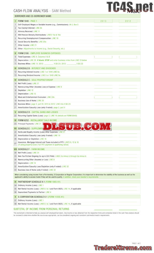 Mgic Cash Flow Analysis Sam Method Analyze Self Employed Borrowers Worksheet - JPG Image File