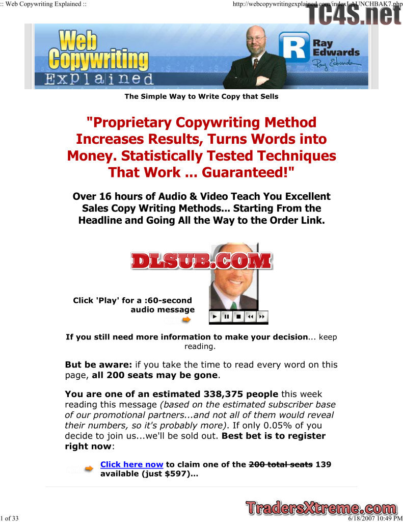 Ray Edwards Web Copywriting Explained Sales Letter - JPG Image File