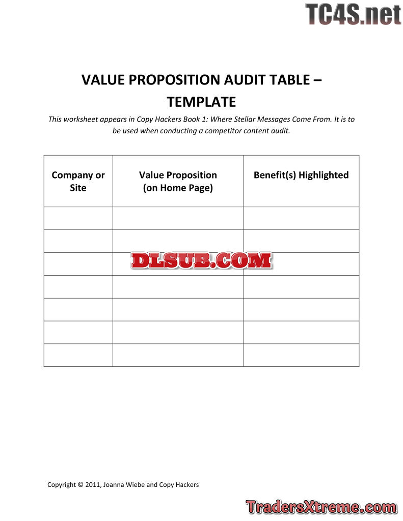 Copy Hackers Template For Auditing Competitor Value Propositions - JPG Image File