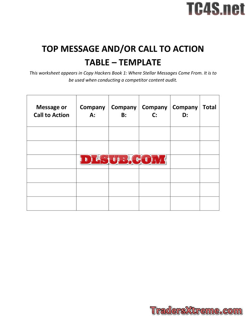 Copy Hackers Template For Auditing Top Messages And Calls To Action - JPG Image File
