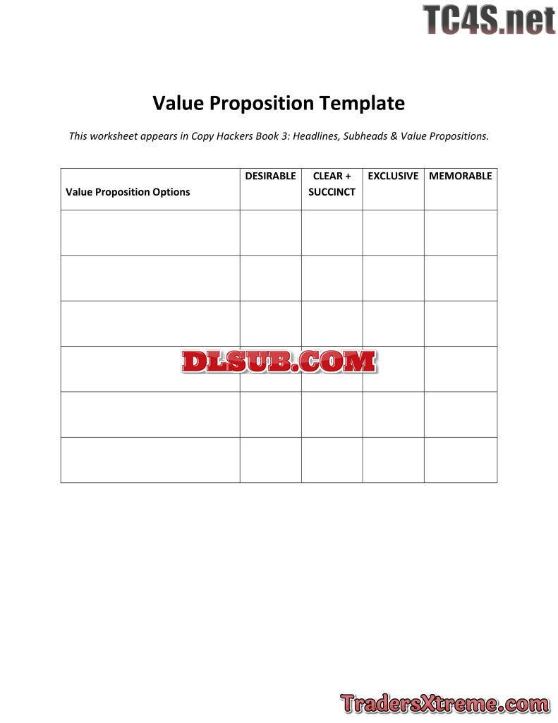 Copy Hackers Template For Evaluating Your Own Value Propositions - JPG Image File