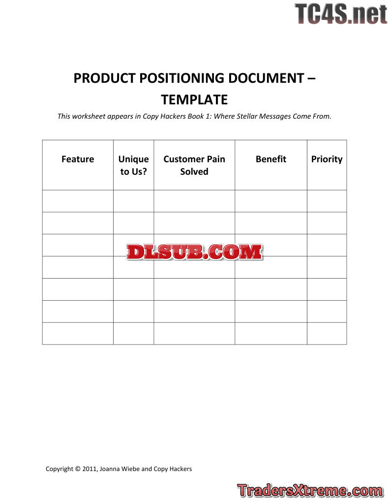 Copy Hackers Template For The Product Positioning Document - JPG Image File