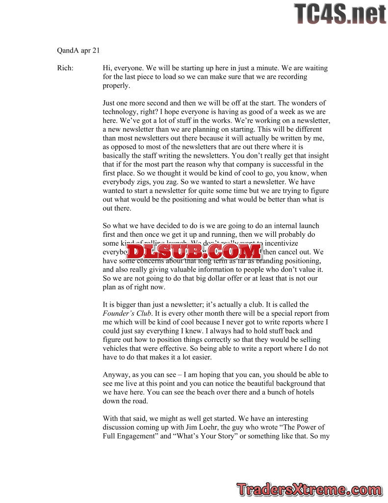 Apr 21 Q And A Call Morning Q Anda Transcript - JPG Image File