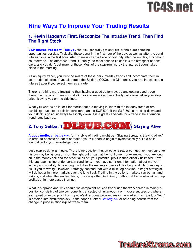 Kevin Haggerty Nine Ways To Improve Your Trading Results