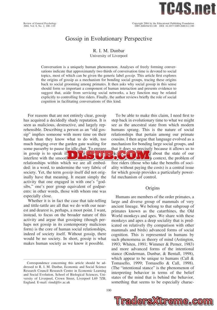 Gossip In Evolutionary Prespective By R I M Dunbar - JPG Image File