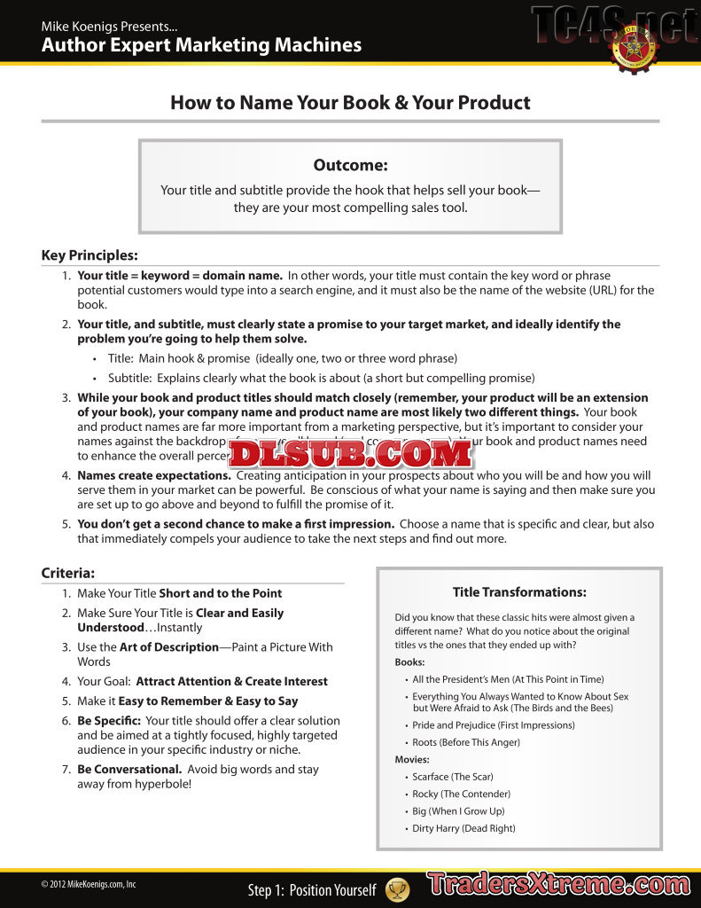 05 Worksheet How To Name Your Book And Product