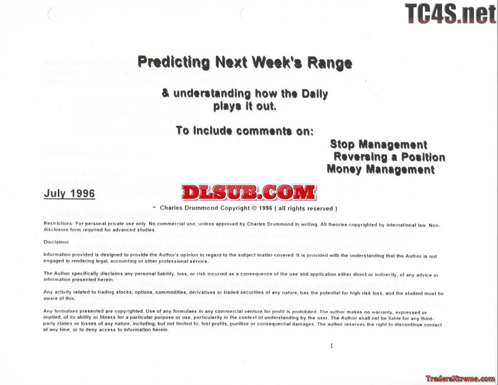 Charles Drummond Predicting Next Weekss Range - JPG Image File