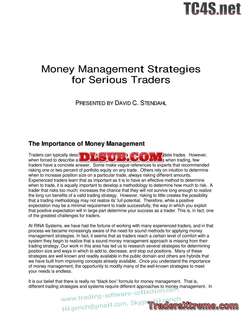 David Stendahl And Rina Systems Money Management Strategies For Serious Traders - JPG Image File