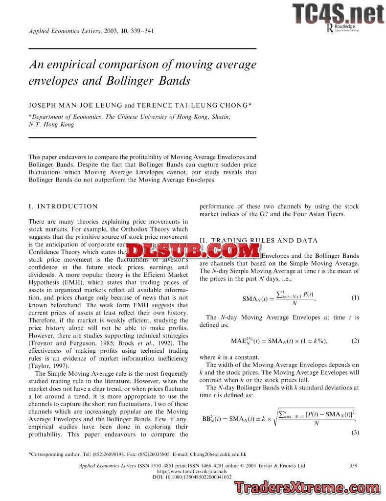 Joseph Man Joe Leung An Empirical Comparison Of Moving Average Envelopes And Bollinger Bands