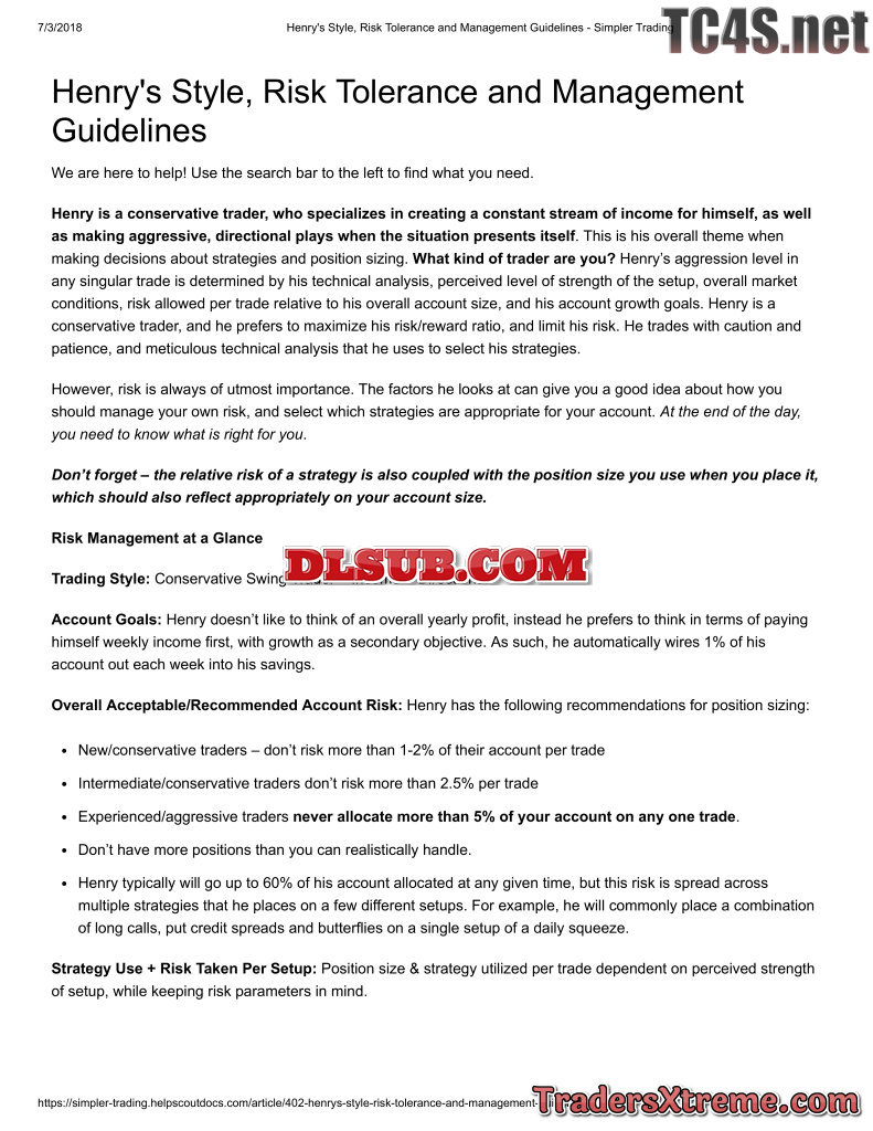 Henrys Style Risk Tolerance And Management Guidelines Simpler Trading - JPG Image File