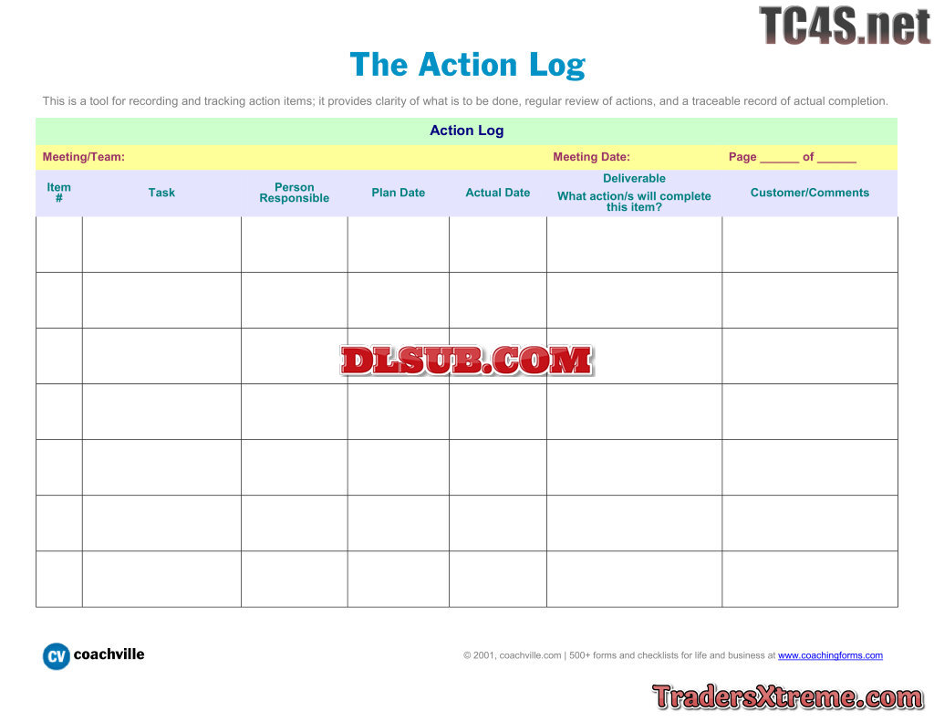 The Action Log Record And Track Action Items - JPG Image File