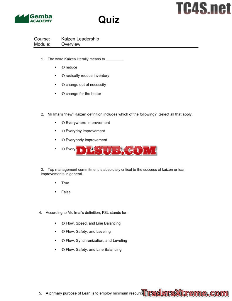 Quiz Answers Kaizen Leadership - JPG Image File