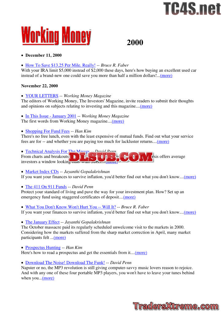 Working Money Index To 2003 - JPG Image File