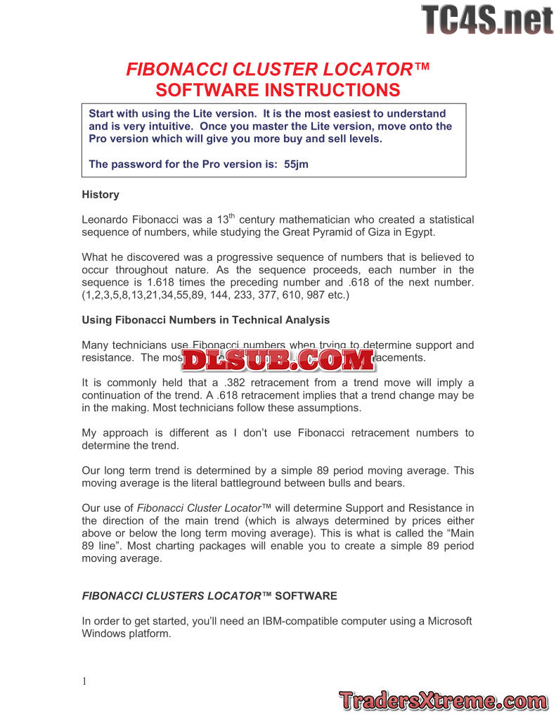 Fibonacci Cluster Locator Lite Manual Day Traders