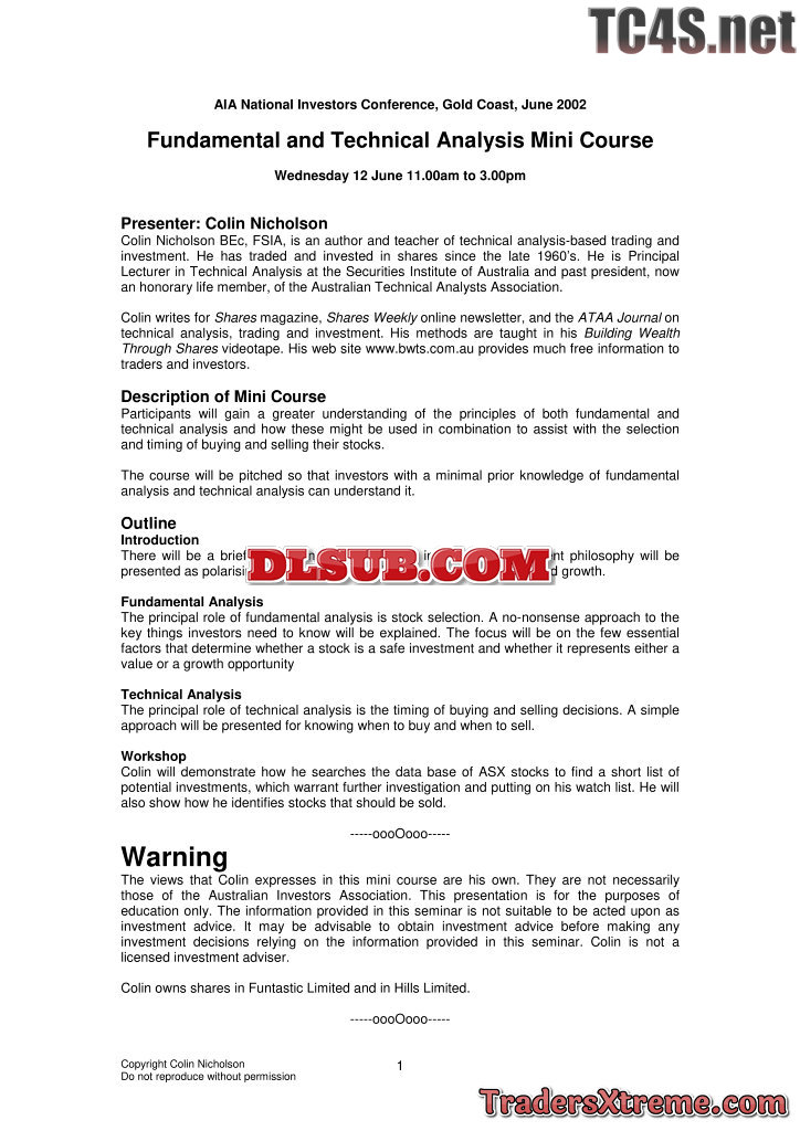 Colin Nicholson Fundamental And Technical Analysis Mini Course Bwts Au