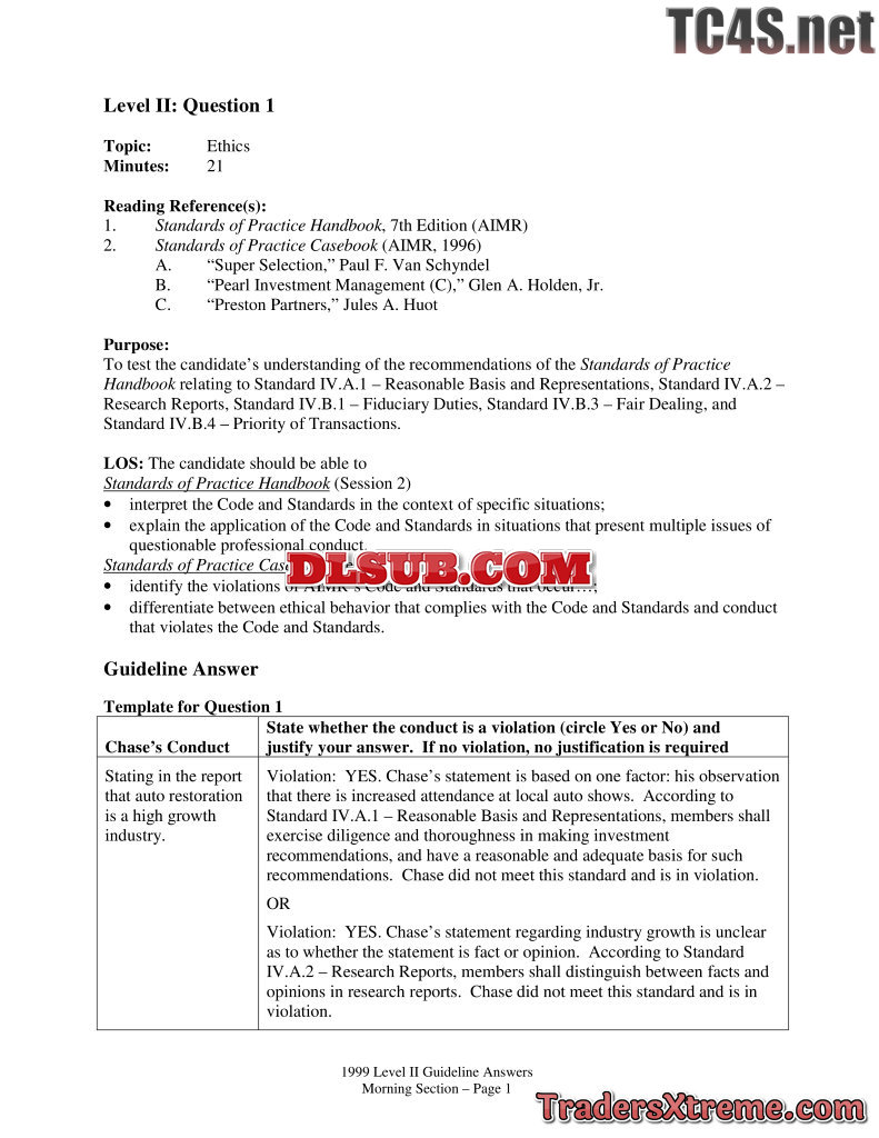 1999 Cfa Level 2 Examination Book 1999 Morning Section