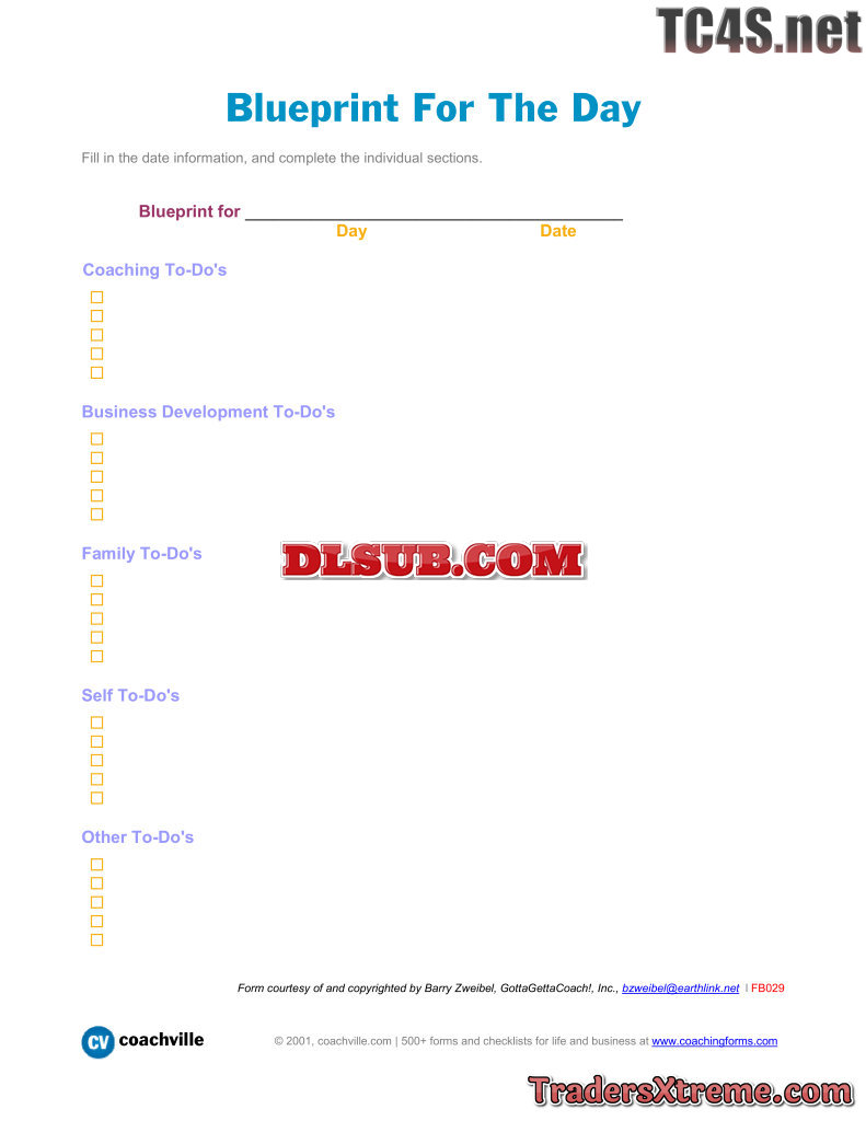 Blueprint For The Day A Complete To Do Checklist - JPG Image File