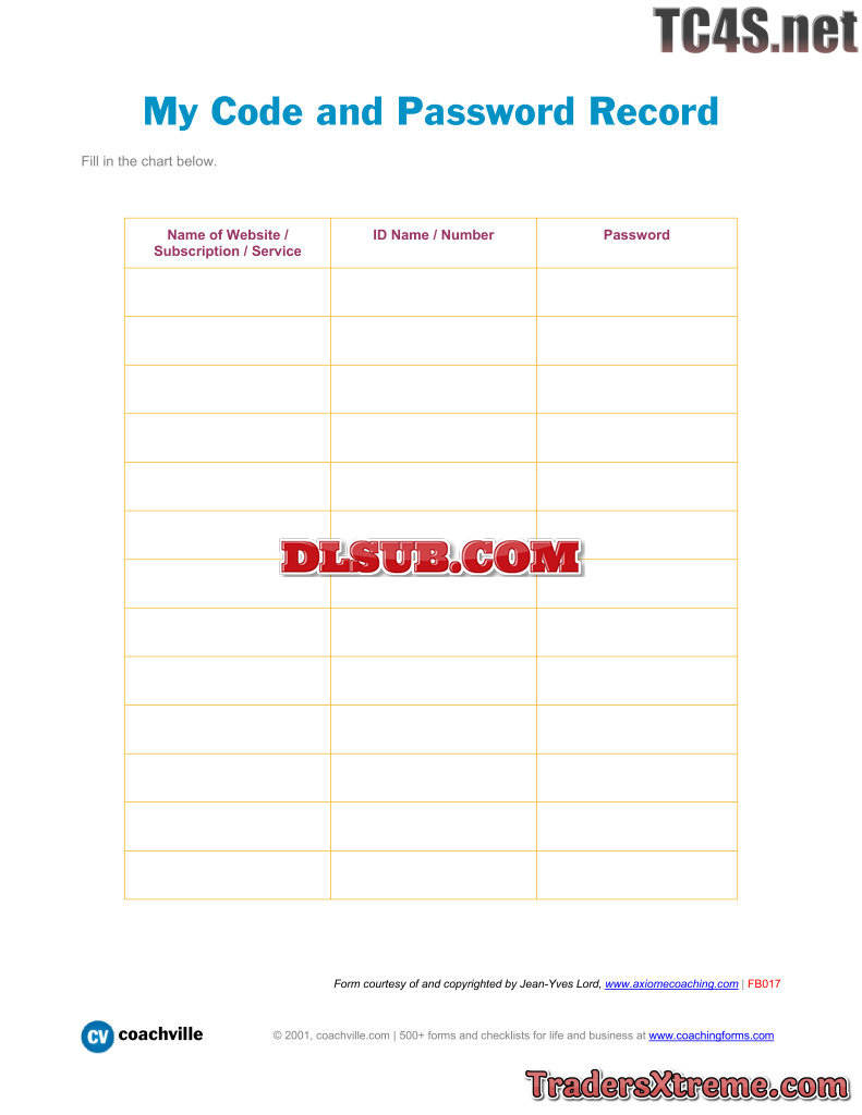 My Code And Password Record - JPG Image File