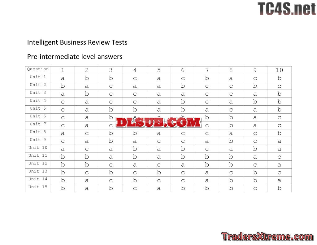 Pre Intermediate Review Tests Key - JPG Image File