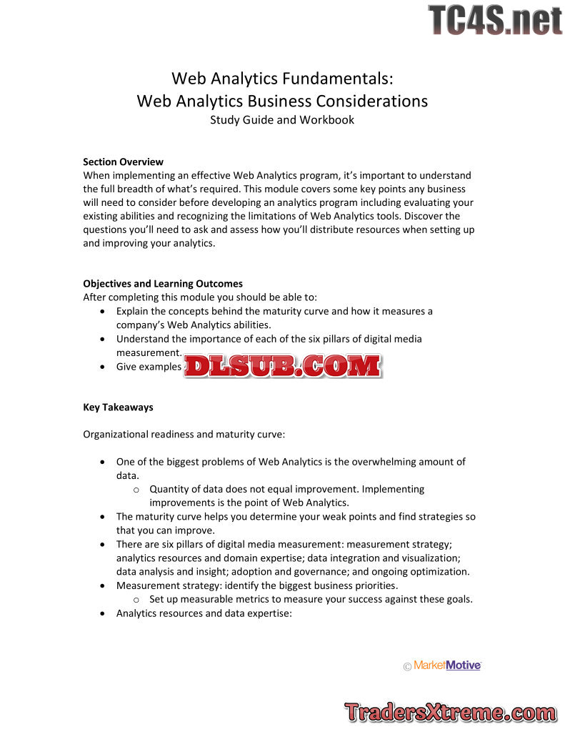 Web Analytics Business Considerations Study Guide And Workbook - JPG Image File