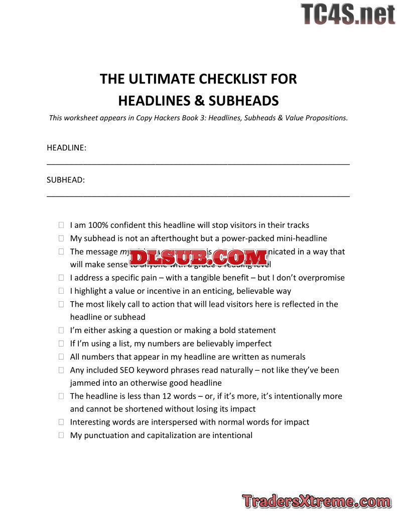 Copy Hackers The Ultimate Checklist For Headlines And Subheads - JPG Image File