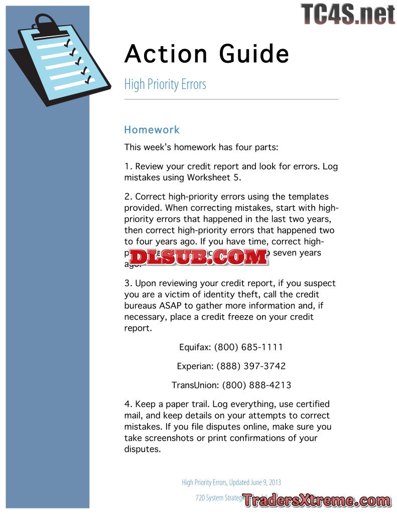 Lesson 6 High Priority Errors Action Guide - JPG Image File