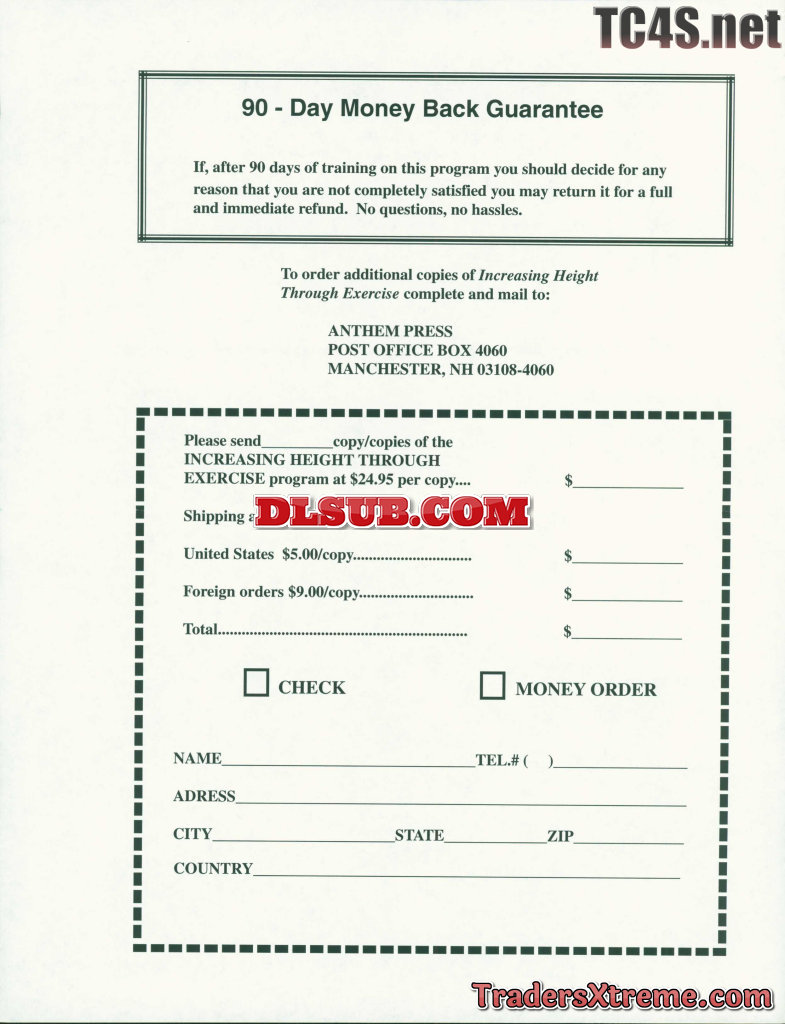 Steven C Cummings Increasing Height Through Exercise Growth Theory And Practice Order Form - JPG Image File