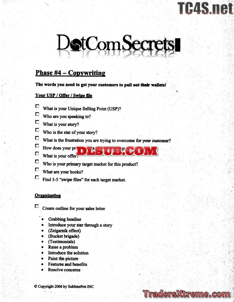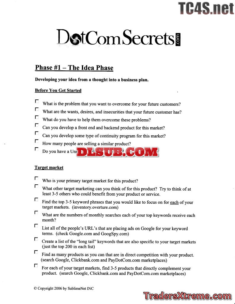 Dotcomsecrets Checklist