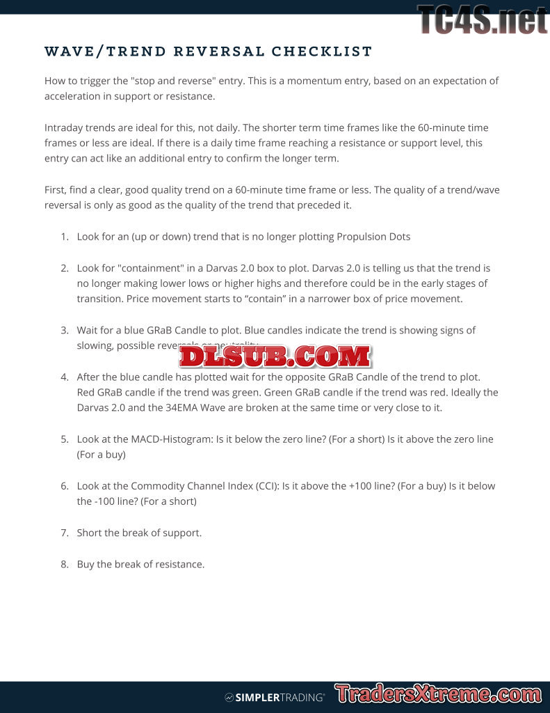 2 Wave Trend Reversal Checklist - JPG Image File