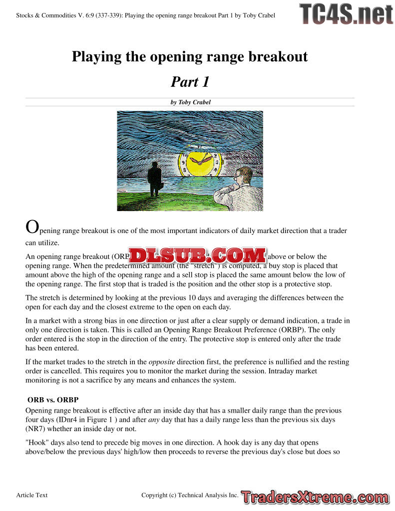 Toby Crabel Playing The Opening Range Breakout - JPG Image File